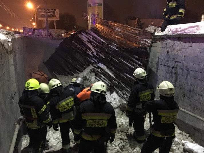 Для забезпечення можливості подальшого демонтажу пошкодженого даху, співробітниками Служби порятунку «101» за допомогою лопат було розчищено сніг з обвалених металевих конструкцій. А за допомогою бензорізу та ломів пошкоджений дах було розібрано та винесено з підземного переходу на поверхню.
