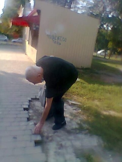 У Дніпрі помітили літнього чоловіка, який розбирав пішохідну доріжку. Зокрема, чоловік витягував із неї по одній частинці бруківки, а потім клав їх у сумку. Про інцидент розповіли у Facebook-спільноті «Наш Тополь 1».