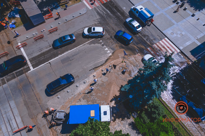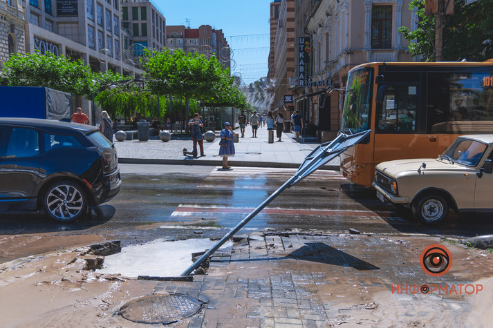Подія трапилася 14 липня в районі Катеринославського бульвару. Там на початку пішохідного переходу зі сторони алеї стався аварійний прорив труби. Через що тротуар і проїжджу частину затопила вода.