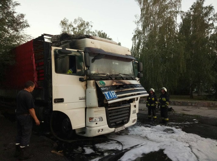Прибувши на місце події, рятувальники побачили, що горить моторний відсік автомобіля DAF.