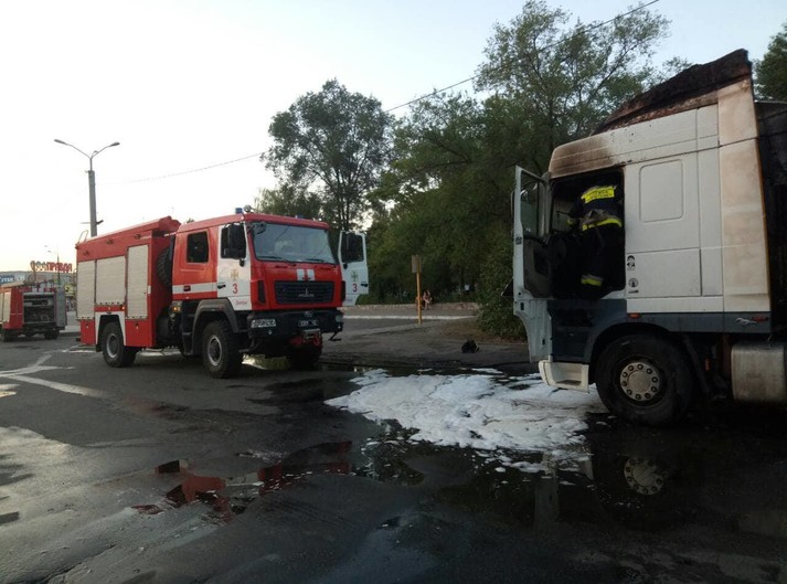 У Дніпрі на ходу загорілася вантажівка з нетверезим водієм
