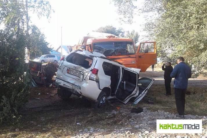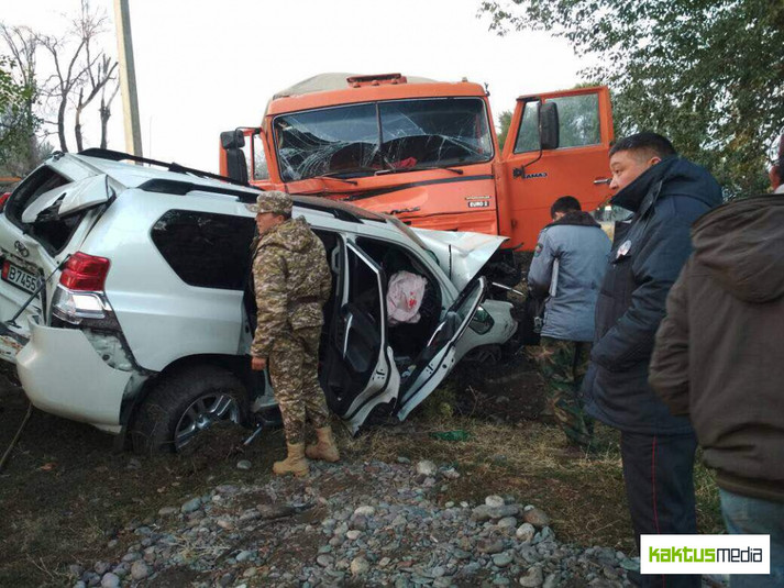 ДТП сталося в селі Садово, що в 36 кілометрах від Бішкека. Повідомляється, що автомобіль Джумакадирова врізався в КамАЗ з причепом.