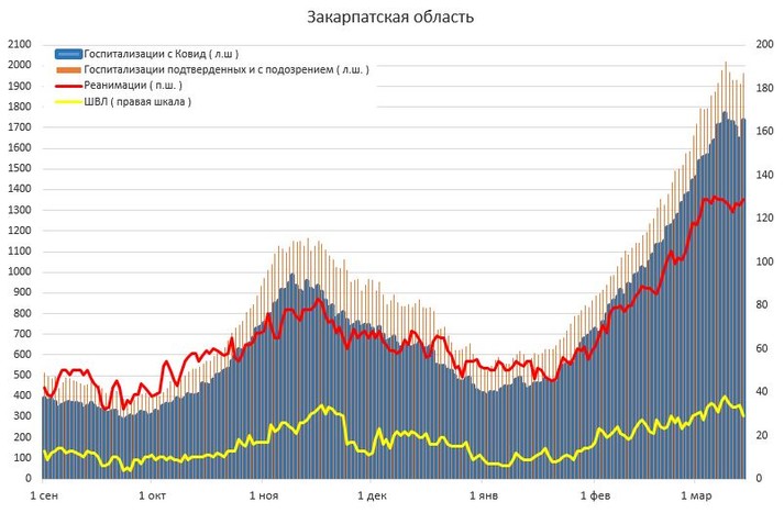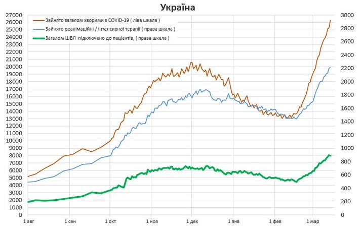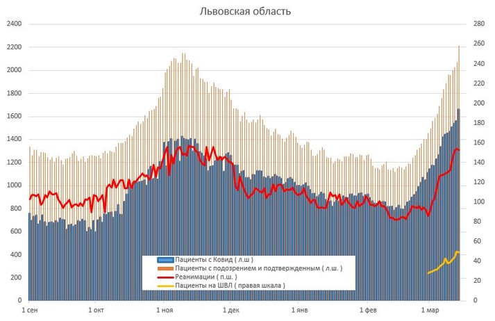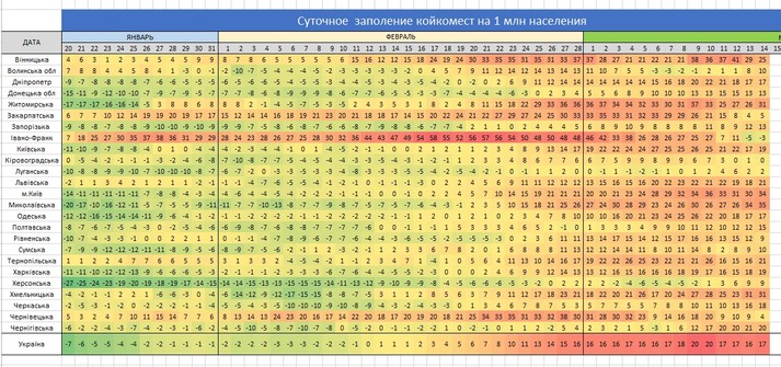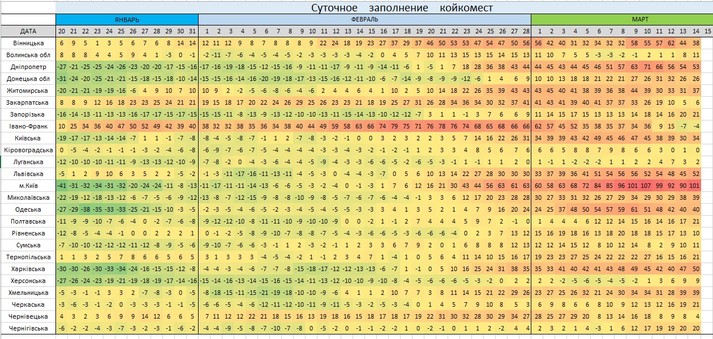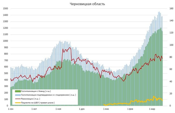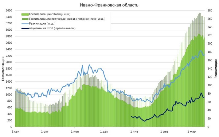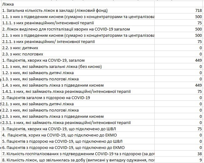 Найбільше за добу заповнили ліжкомісць: Київ (+173), Львівська (+125) та Івано-Франківська (+85) області. У Дніпропетровській та Одеській областях зростання на 71 ліжкомісце. Раймкнший ріст в Кіровоградській та Луганській областях (+3).