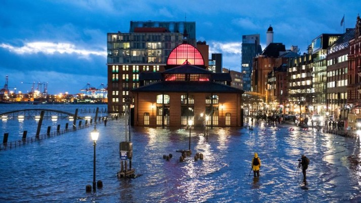 Німецький Гамбург 8 січня пережив перший шторм у цьому році – рівень води у ріці Ельба піднявся та затопив частини рибного ринку в районі Сан-Паулі.