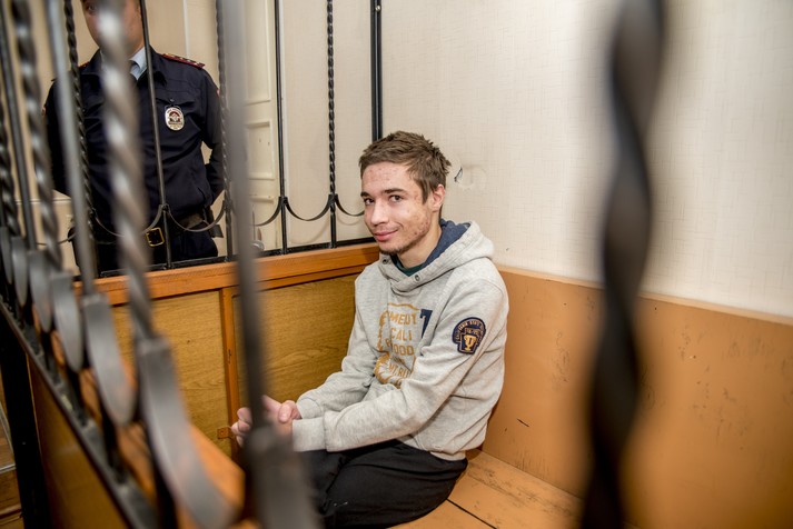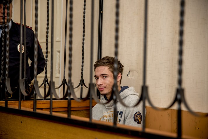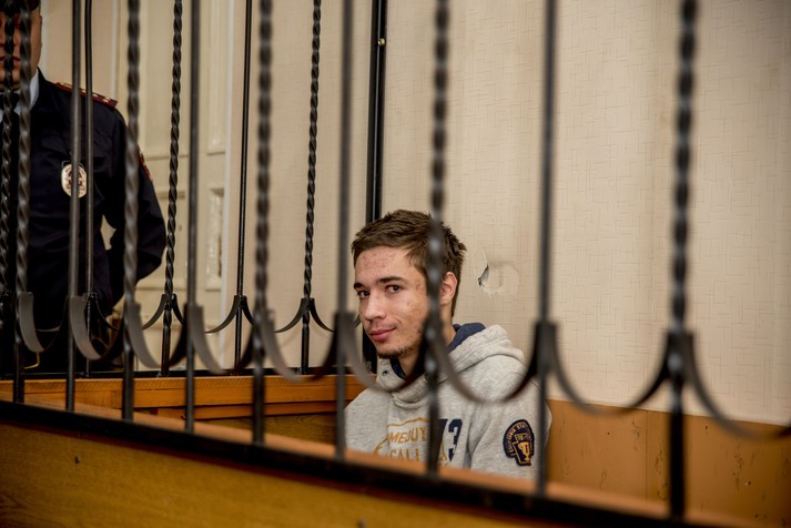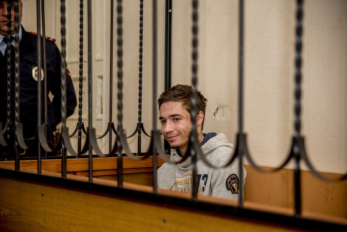 В редакції «Главкому» з’явилися ексклюзивні фото 19-річного українця Павла Гриба під час сьогоднішнього засідання Жовтневого районного суду міста Краснодар (РФ), де хлопцю продовжили утримання під вартою до 4 січня 2018 року.