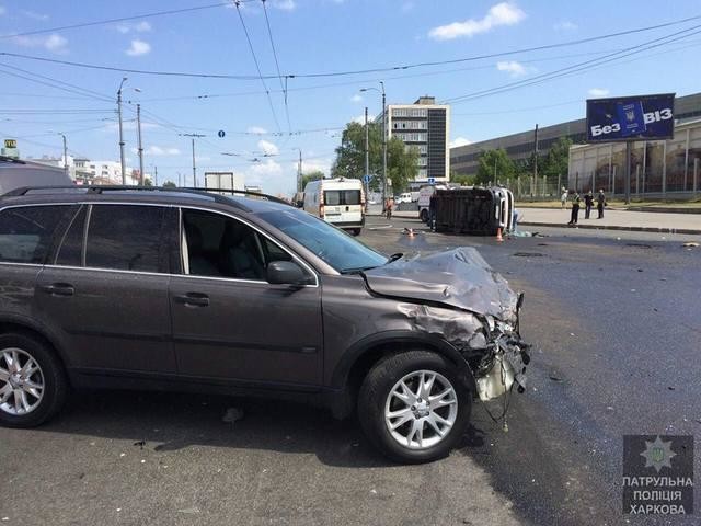 У Харкові карета «швидкої допомоги» зіткнулася з позашляховиком Volvo та перекинулася, постраждали 6 людей.
