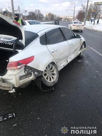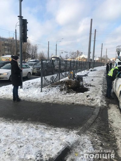 Внаслідок зіткнення автомобіль КІА, яким керував 29-річний харків’янин, відкинуло на острівок безпеки, де в цей час знаходився пішохід.
