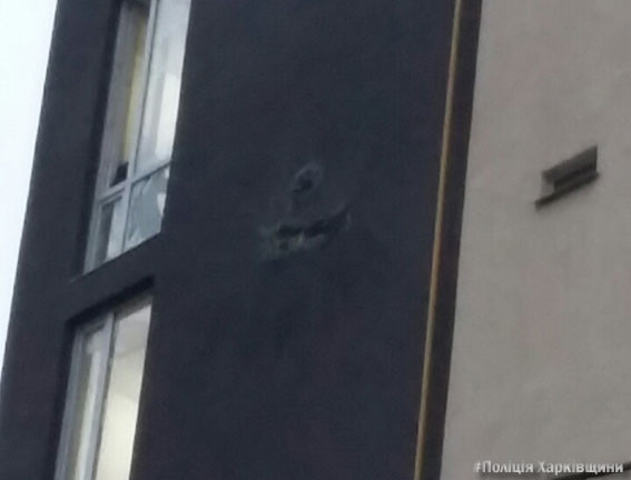 У результаті стрілянини пошкоджені вікна та торцева стіна