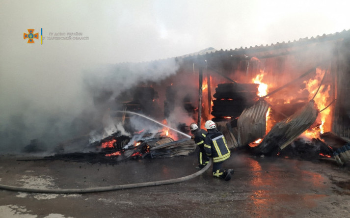 У Харкові горять склади з деревиною. Рятувальники задіяли пожежний потяг (фото)