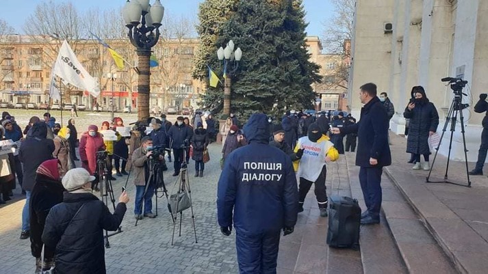 Акція протесту відбувається мирно, за нею спостерігає поліція діалогу.