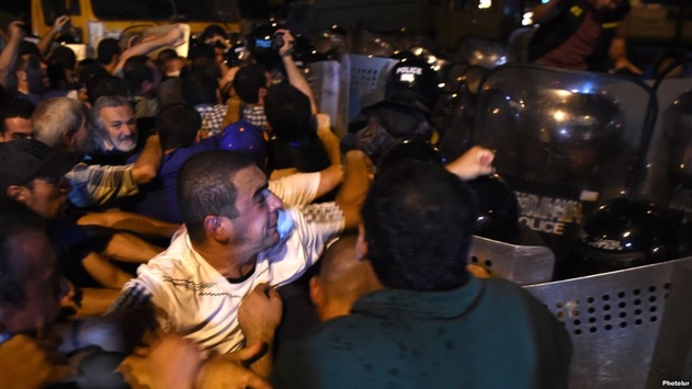 Нагадаємо, в Єревані близько захопленого поліцейської дільниці відбулися зіткнення. Поліція застосувала проти демонстрантів сльозогінний газ і світло-шумові гранати. Демонстранти кидали каміння, пляшки і петарди. Із сміттєвих баків вони спорудили барикади.