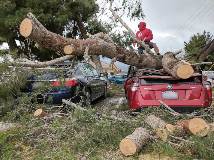 Шторм, що супроводжувався дощами і поривами вітру близько 110 кілометрів на годину, повалив сотні дерев і обірвав лінії електропередач в районі округів Лос-Анджелес, Вентура і міст Санта-Барбара і Сан-Бернардіно.