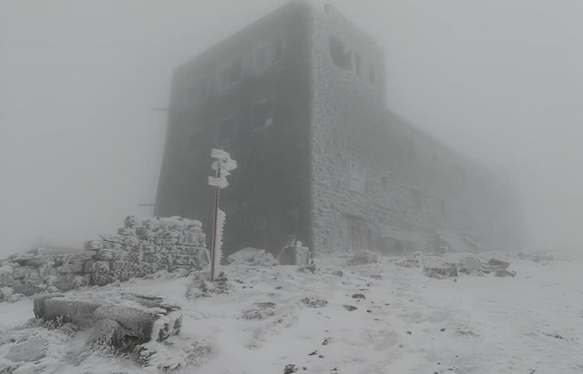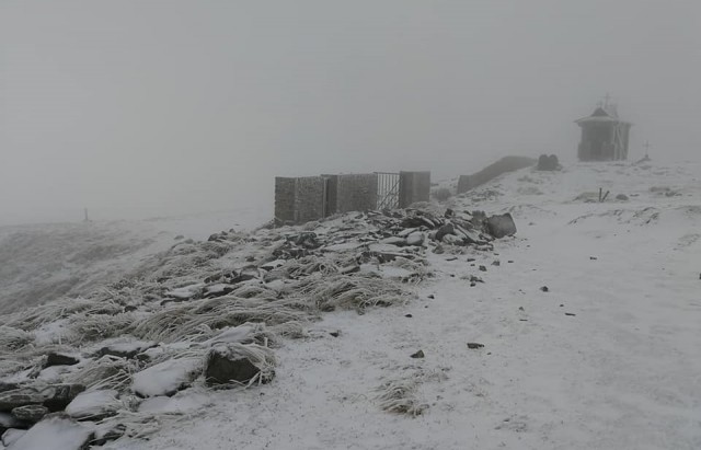 На горі Піп Іван, що входить до Чорногірського хреба, випав сніг