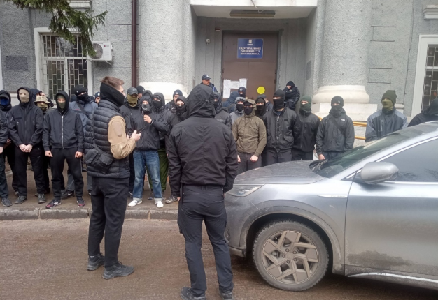 Варто зауважити, що на оголошення рішення під судом чекали кілька десятків молодих людей, які з закритими обличчями протестували проти одностатевих шлюбів. Молодики представилися «українськими націоналістами», однак жодних імен та прізвищ не назвали.