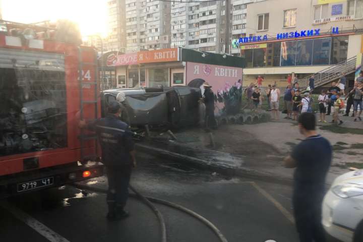 На фотографіях, які опублікувало видання «Обозреватель» видно перевернутий автомобіль прямо біля кіоску з квітами, який розташований на зупинці.