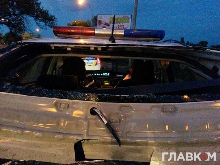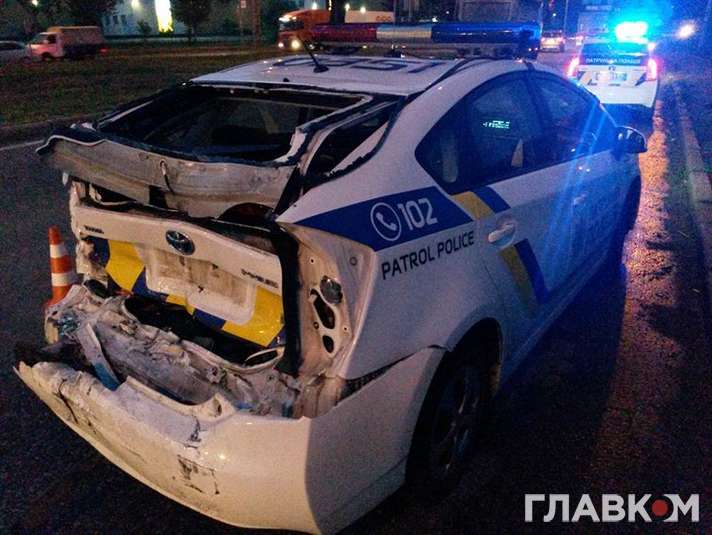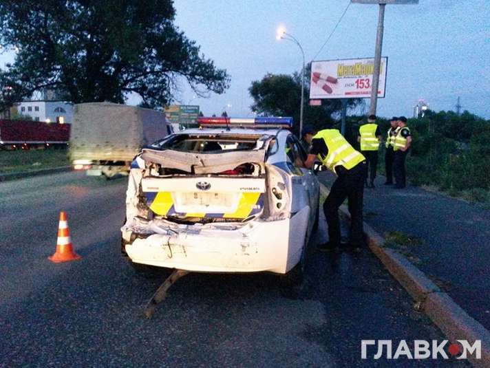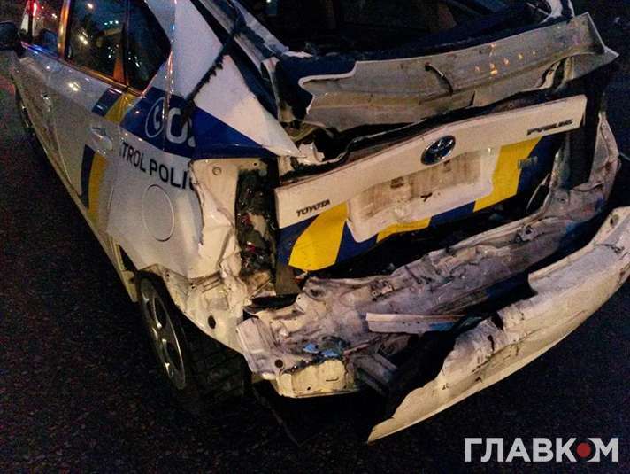 Пішоходи при цьому не постраждали. Одного з правоохоронців госпіталізували до лікарні. За попередніми даними у працівника поліції закрита черепно-мозкова травма.
