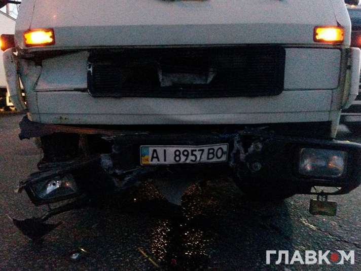 Поліцейське авто зупинилося перед пішохідним переходом, щоб пропустити людей. В цей час у патрульне авто врізався вантажний автомобіль Volkswagen-Man.
