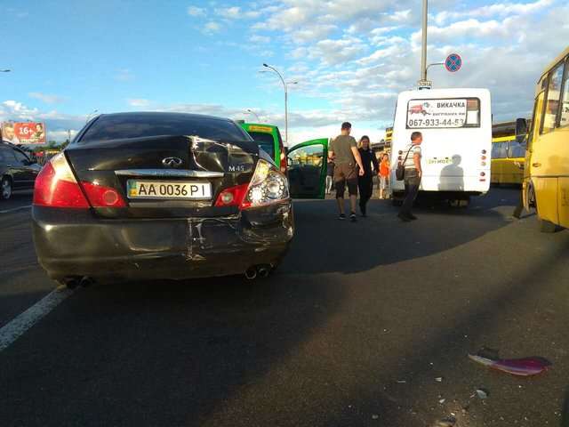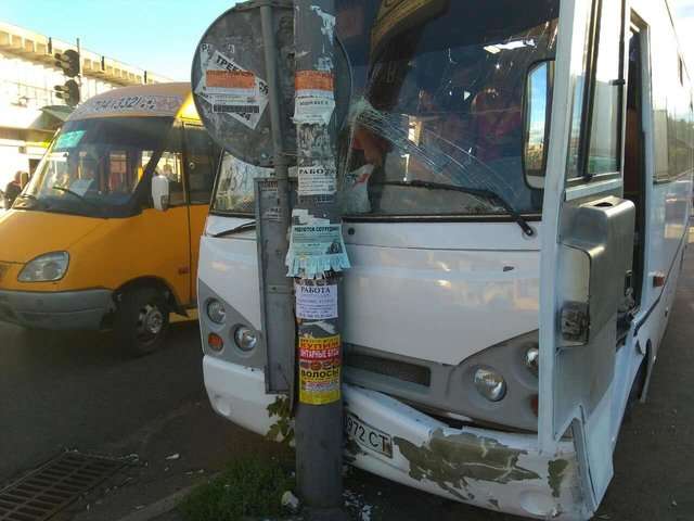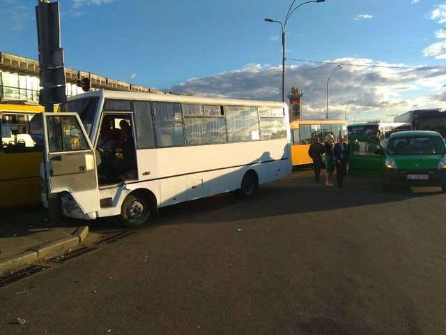 У четвер ввечері, 6 липня в Києві біля станції метро «Лісова» сталася ДТП - маршрутка врізалася в стовп.