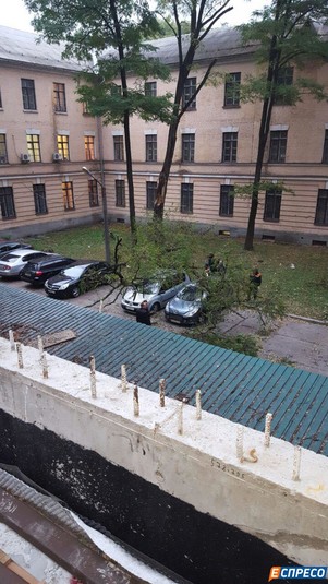 На території Головної військової прокуратури сталося падіння дерева, в результаті чого було пошкоджено 4 автомобілі.