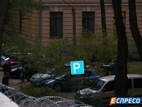 На території Головної військової прокуратури дерева пошкодили 4 автомобілі