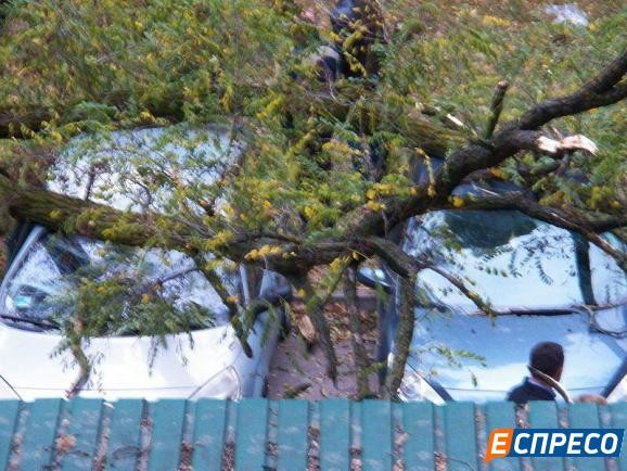 У Києві біля військової прокуратури дерева потрощили автівки