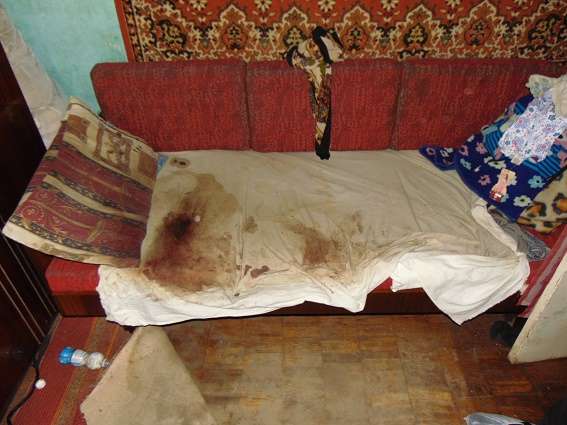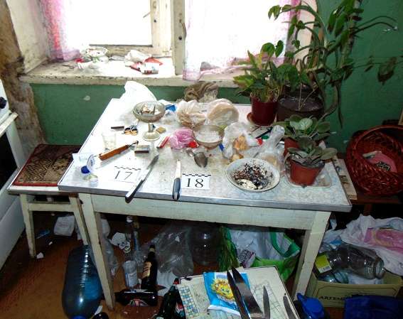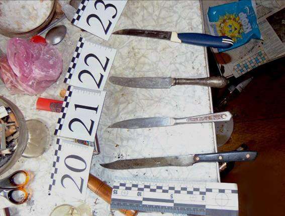 З місця події слідчо-оперативна група вилучила вісім ножів зі слідами бурого кольору. Речові докази направлено на експертні дослідження.