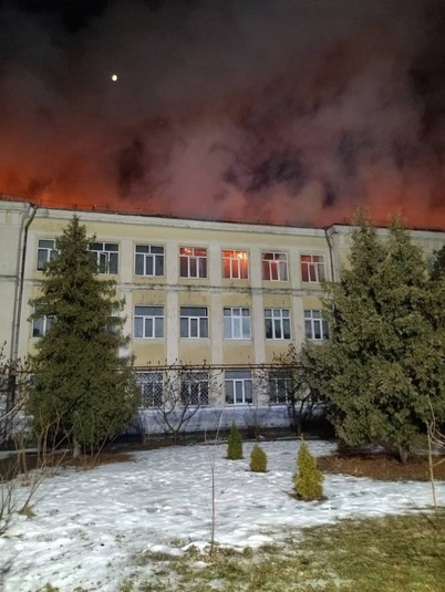 14 лютого о 01:23 у Святошинському районі по вул. Львівська, 25, у навчальному корпусі Київської гімназії східних мов виникла пожежа покрівлі з розповсюдженням на третій поверх.