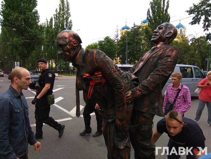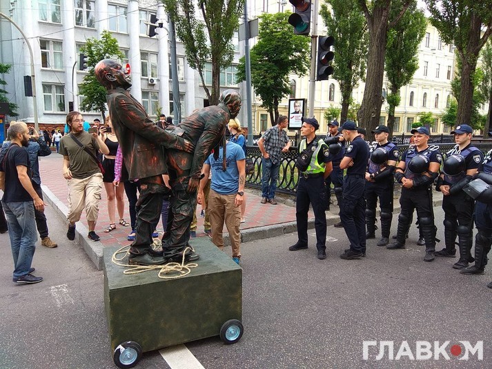 Поліція не пропустила на місце збору учасників «Маршу рівності» у Києві статую із зображенням президента Росії Володимира Путіна. Відповідне фото зробив кореспондент «Главкому».