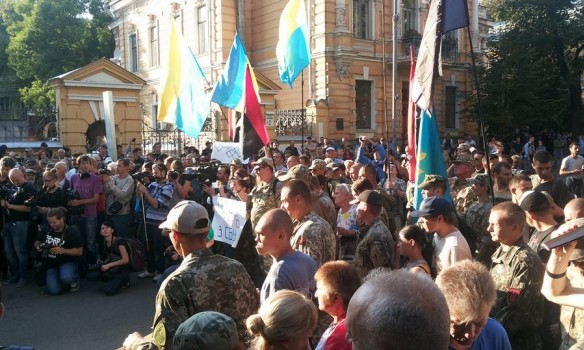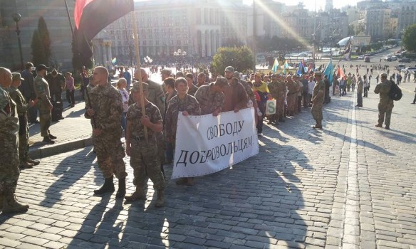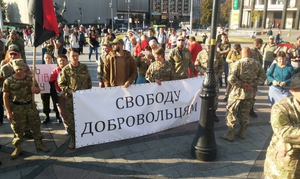 У Києві учасники і прихильники добровольчого руху «ОУН» і однойменного нелегалізованого «добровольчого батальйону» пройшли від Українського дому до адміністрації президента, де перед порожньою будівлею виголосили свої вимоги.