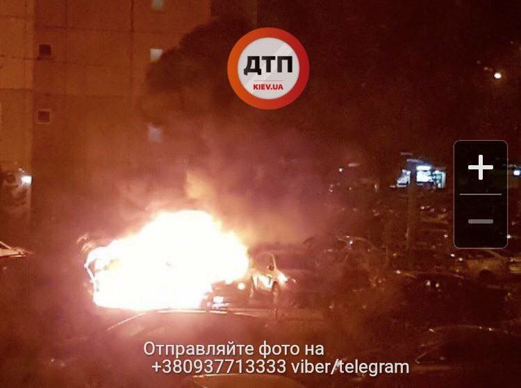 Уночі проти 9 жовтня у Києві на Позняках спалахнули три автомобілі, один із яких був з номерами міністерства внутрішніх справ.
