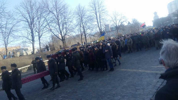 На вулиці Інститутській, у центрі Києва, в понеділок відбулось прощання з бійцем 12-го ОМПБ Леонідом Проводенком із позивним Козак, загиблим 28 грудня.