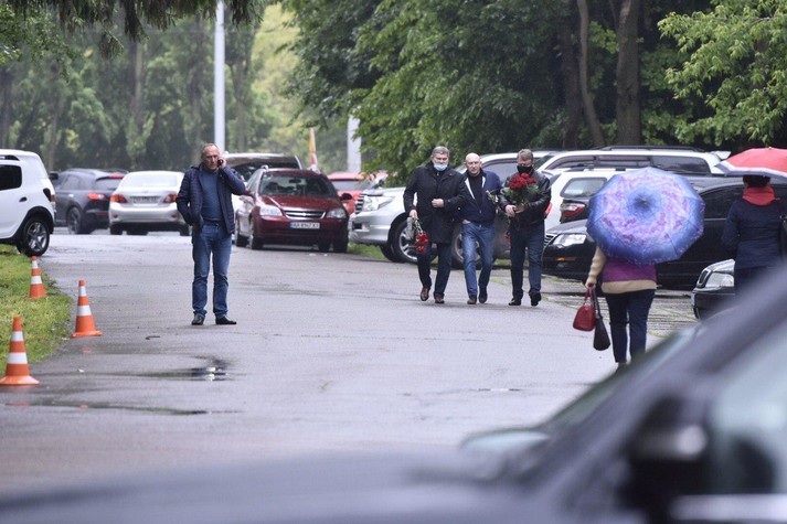 На прохання близьких нардепа – журналістів всередину не впустили. Самі відвідувачі скорботної церемонії залишали автівки перед ворітьми лікарні та з квітами і вінками йшли до будівлі.