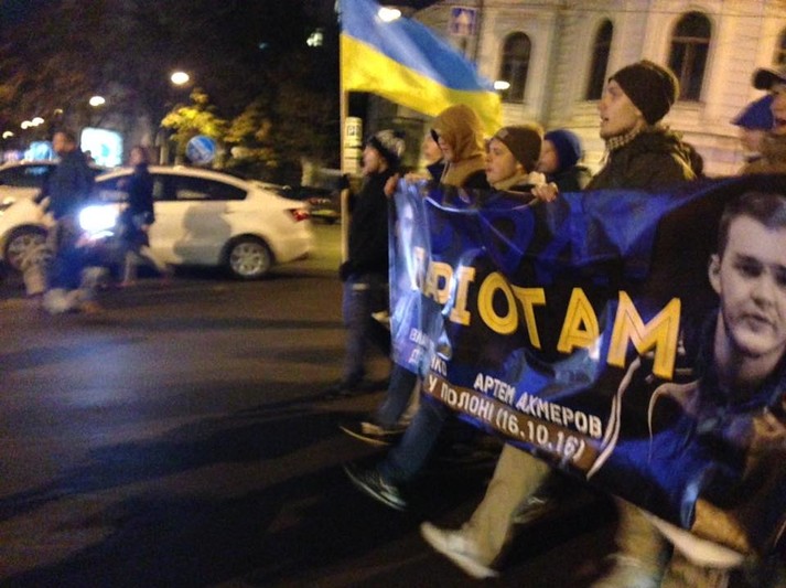 Марш закінчився під стінами представництва Європейського Союзу в Україні. Мітингувальники оголосили про вимогу до структур ЄС сприяти звільненню Овчаренка та Ахмерова.