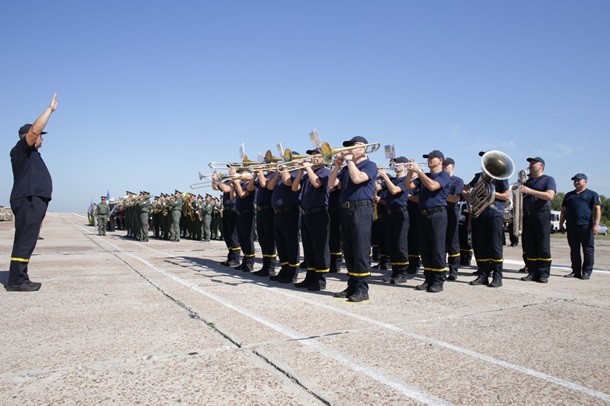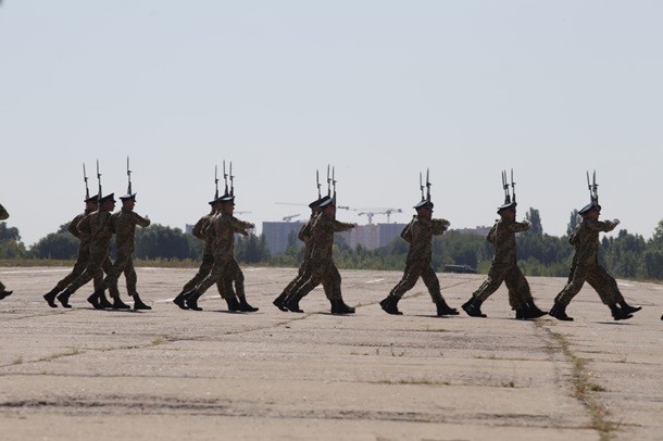 «На злітній смузі заводу «Антонов», незважаючи на спеку, військові та представники інших силових формувань України відшліфовували майстерність стройового кроку, відпрацьовували сценарій подій і співали гімн - усе, щоб гідно представити свої підрозділи на Майдані Незалежності 24 серпня», - йдеться в повідомленні.