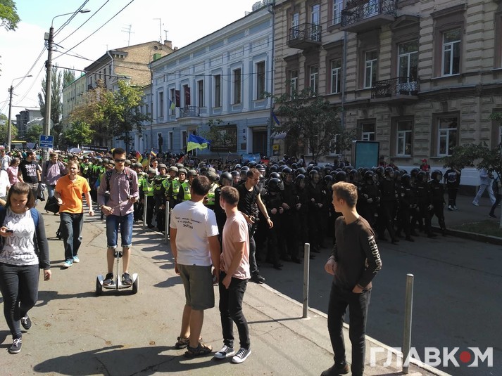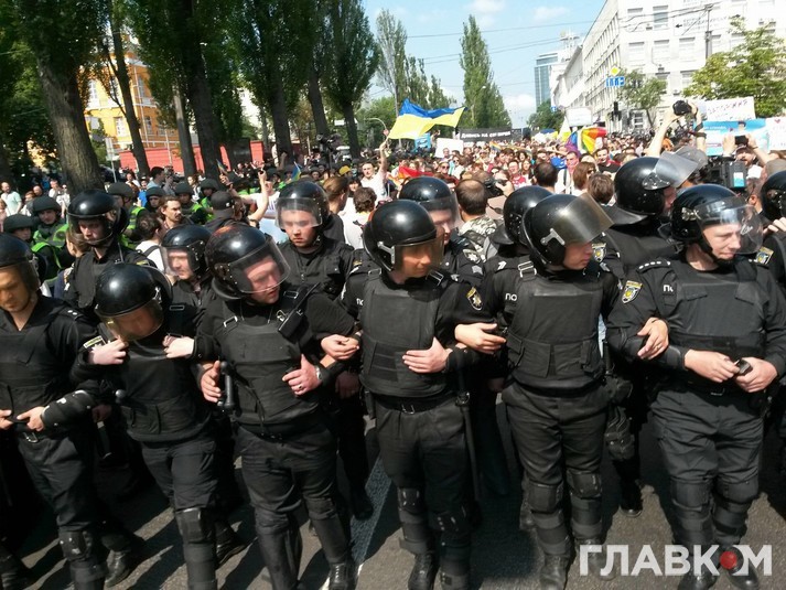 Крім цього, перед ходою були затримані троє хлопців. У них були вилучені балаклави і газові балончики. Також поліція повідомила про виявлення у молодих людей біля станції метро «Університет» курячих яєць та зеленки.