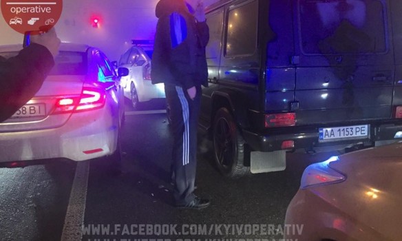 Повідомляється, що водій Mercedes представився «депутатом». Він скандалив і кидався на патрульних. Поліцейські доставили його в Печерське управління.