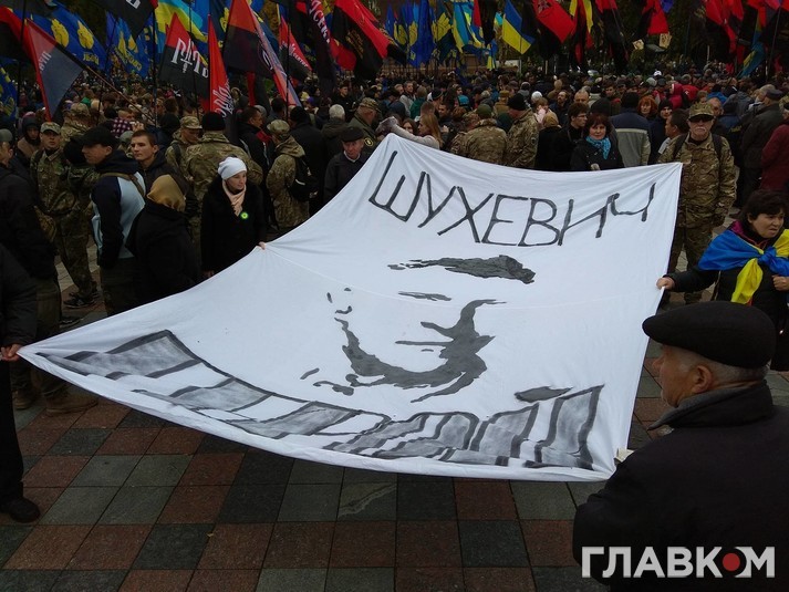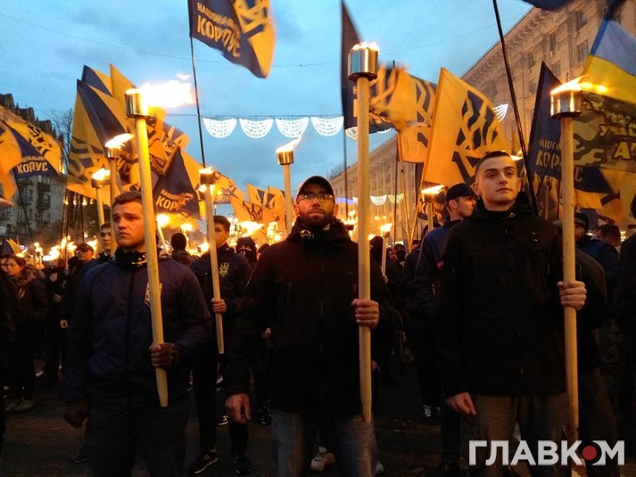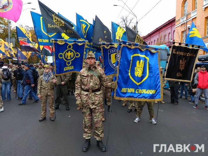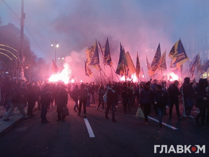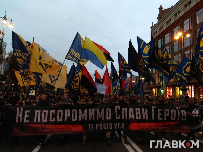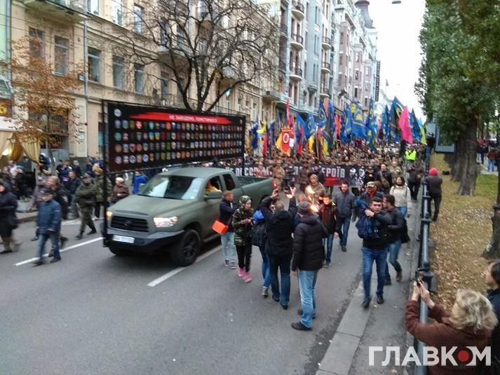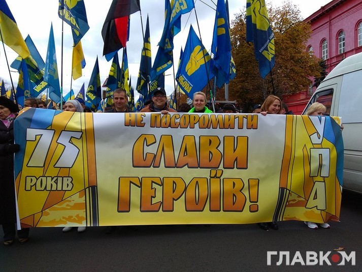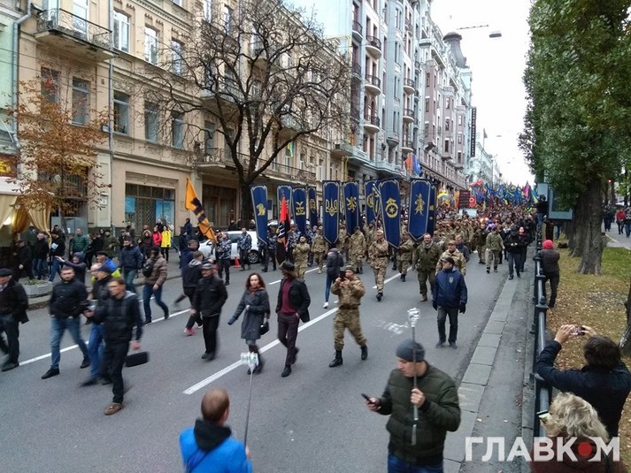 У столиці розпочався марш слави УПА. Сама хода рушила близько 17:40. Перед учасниками маршу йде колонна правоохоронців. Очолюють ходу лідер ВО «Свобода» Олег Тягнибок, голова партії «Національний корпус» Андрій Білецький, голова партії «Правий сектор» Андрій Тарасенко.