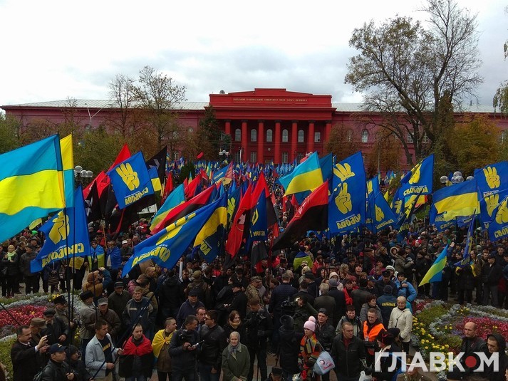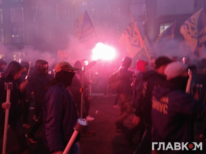 Перед цим у Києві пройшло віче учасників традиційного маршу слави УПА. По його завершенні відбувся брифінг керівництва націоналістичних сил-організаторів заходу.