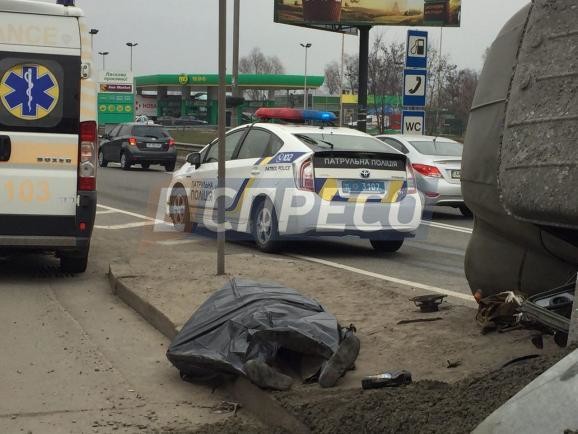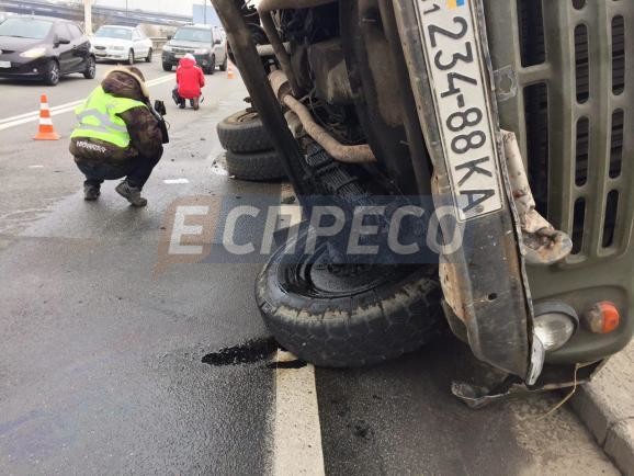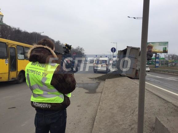 У Києві сталася смертельна ДТП: на мосту перекинулась вантажівка