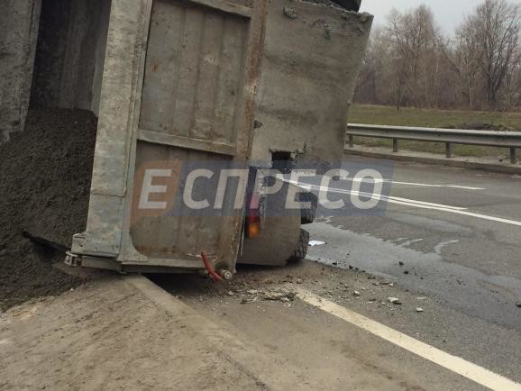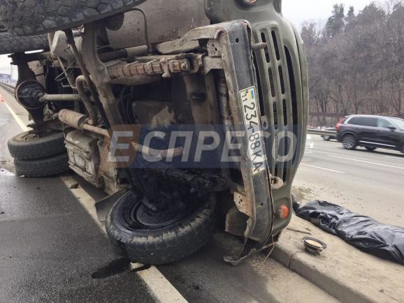 У Києві на з'їзді з Дарницького мосту переврнулась вантажівка, в результаті чого її водій загинув на місці