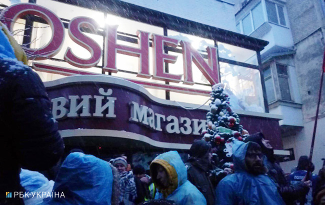 У Києві учасники «Маршу за імпічмент» розбили вітрину магазину «Рошен»