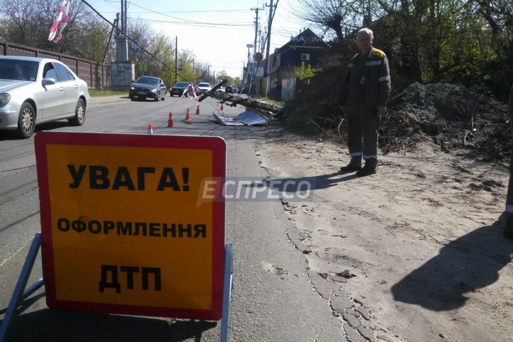У Дарницькому районі Києва вантажівка знесла залізобетонну опору ліній електропостачання, після чого зникла з місця пригоди.