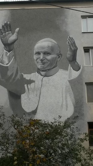 Зазначимо, напередодні відкриття муралу з образом святого Іоанна Павла ІІ, у ніч проти 14 жовтня, невідомі фломастером розмалювали свастикою і антипольськими написами стіни цієї будівлі.