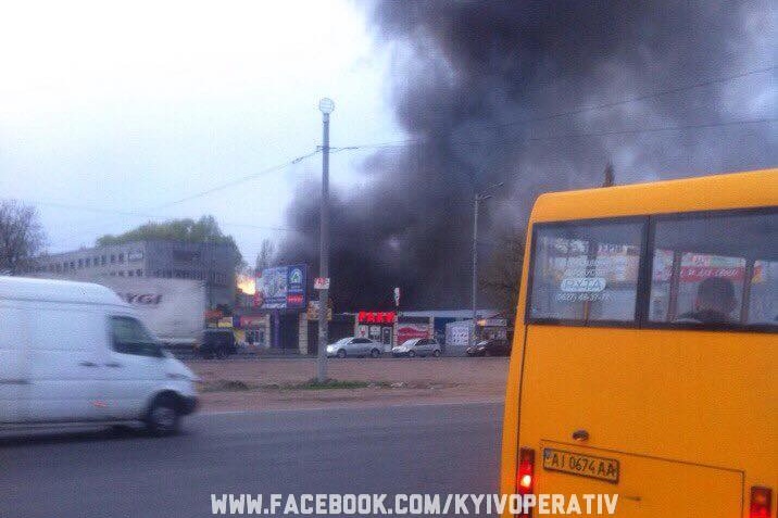 Увечері в п'ятницю в Києві на Кільцевій дорозі поблизу заводу «Електронмаш» сталася сильна пожежа.