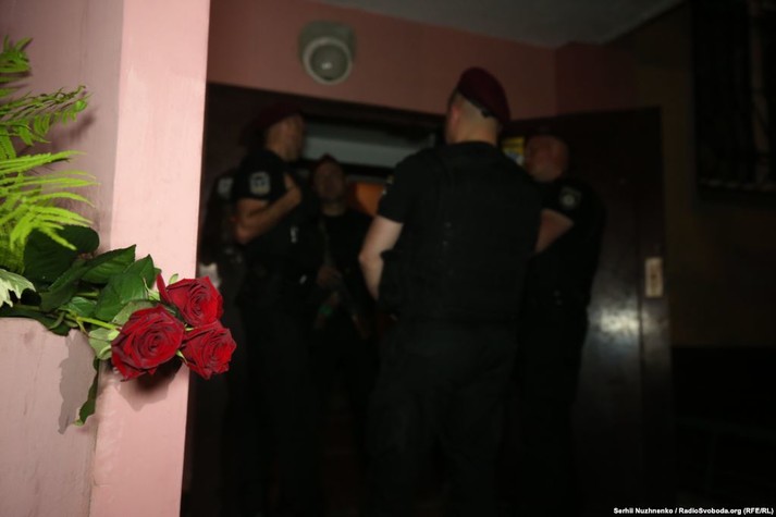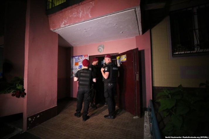 Вранці у середу, 30 травня, у дворі біля будинку загиблого Бабченка правоохоронці перевіряли автомобілі і просили у водіїв відео з реєстраторів.