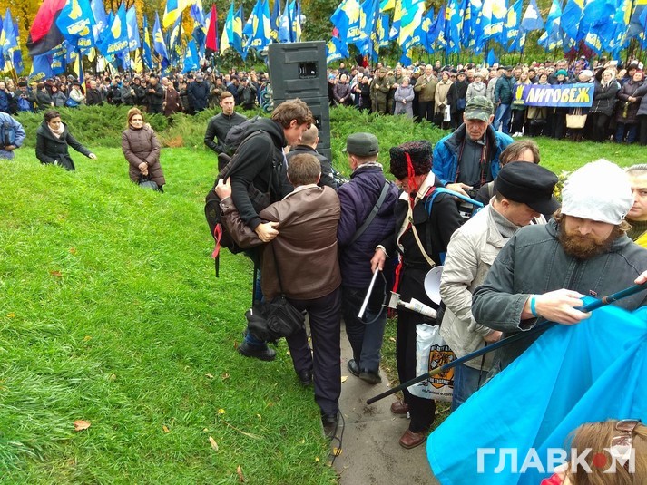 У Києві затримали чоловіка за нацистське вітання. Це відбулося у центрі міста, де збиралися націоналісти, щоб провести ходу на відзначення 75-ої річниці заснування Української повстанської армії.