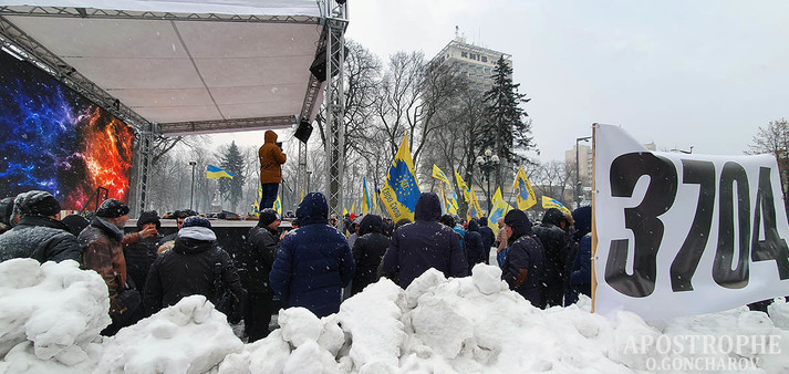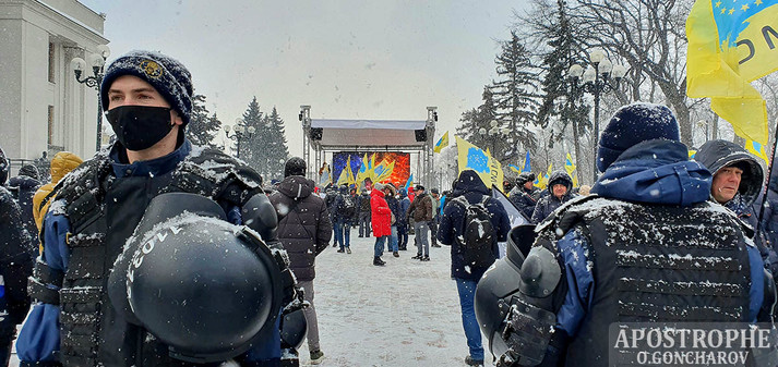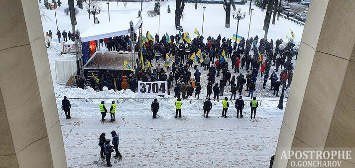 Вранці 18 лютого в Києві під будівлею Верховної Ради зібралися євробляхери на акцію протесту.