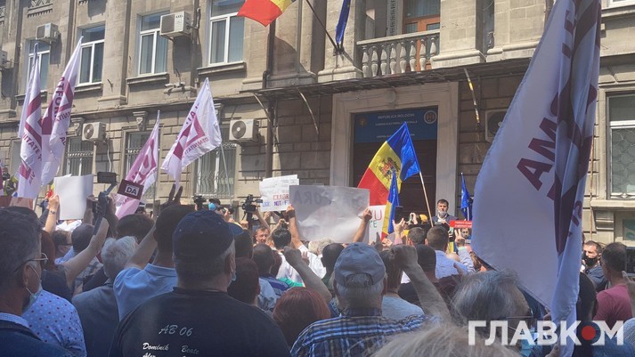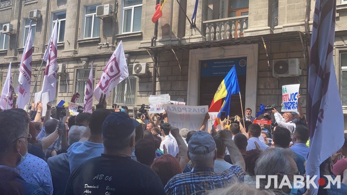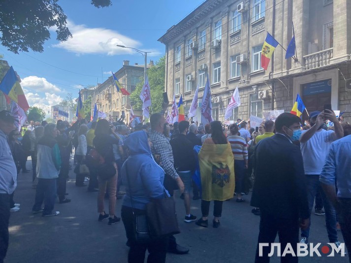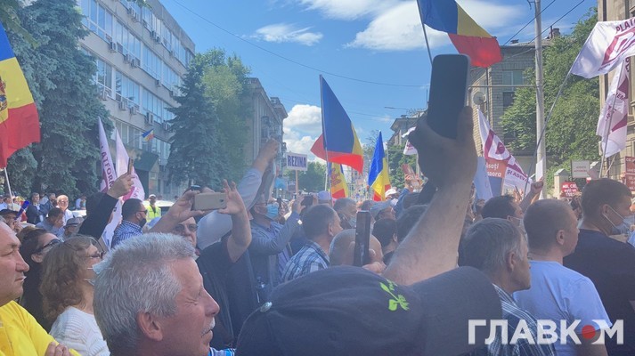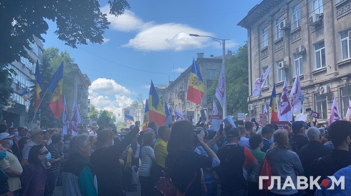 У Кишиневі, 7 червня, представники пропрезидентської політичної партії «Дія та солідарність» та партії «Платформа ДА» мітингують під стінами Центральної виборчої комісії, передає кореспондент «Главкому».