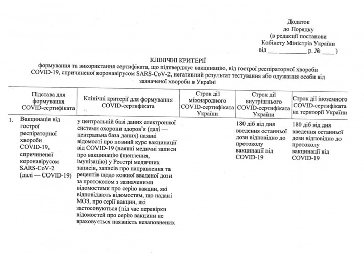 Кабінет міністр України вніс зміни до «ковідних сертифікатів». Термін дії цього документа становитиме 180 діб.