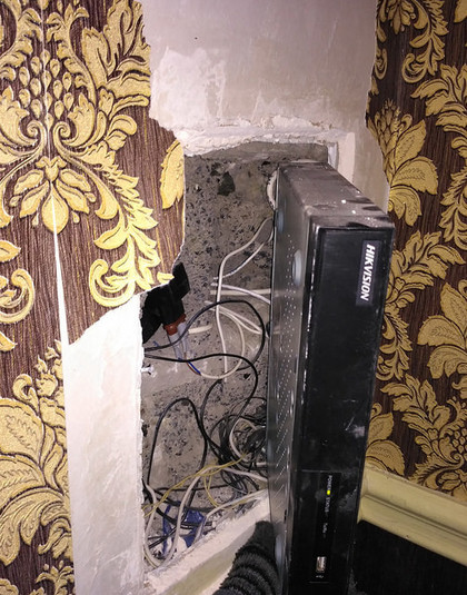 Під час санкціонованого обшуку правоохоронці виявили у приміщені приховані відеокамери та мікрофони, що були підключені до вмонтованого в одну із стін будівлі відеореєстратора. Управління та зняття інформації з нього здійснювалося через інтернет.